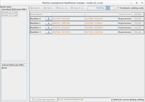 Machine Reassignment http://docs.jboss.org/optaplanner/release/latest/optaplanner-docs/html_single/index.html#machineReassignmentCloud Balancing を複雑化したバージョンです。Google ROADEF 2012 の課題だそうです。 http://challenge.roadef.org/…